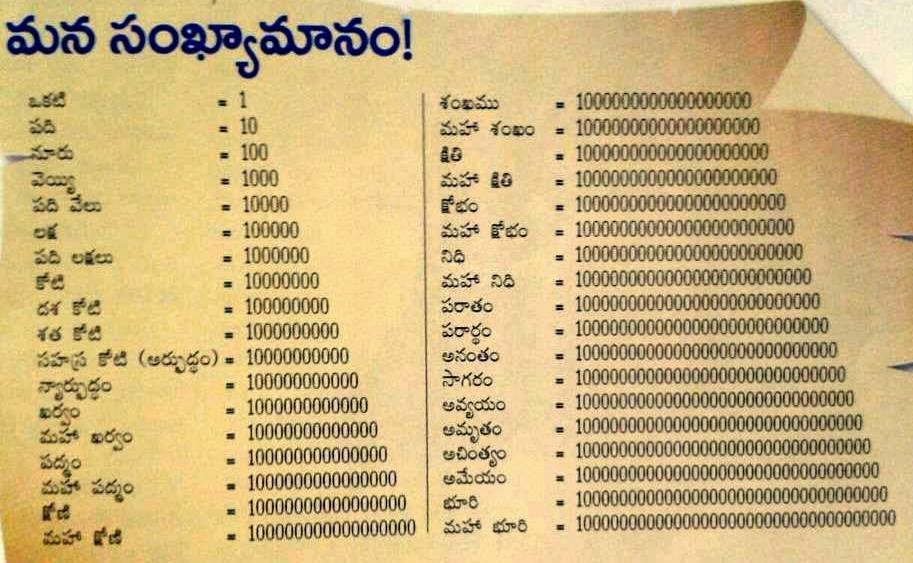 Telugu Sankhya Manam - తెలుగు సంఖ్యామానం